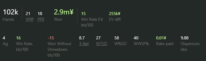 Прямо сейчас я перевалил за отметку в 100к рук и начинаю шотать нл100 на приложухах. Начинал я как маньяк, который стремился выиграть большинство спотов. Тупа блефовал на право и налево лол. Затем я стал гордым пасьянсером, и о чудо! Деньга после этого пошла. Правильный префлоп и сиди, собирай комбинашки. Проще не придумаешь. Забавно, что эта игра во многом бьется правильным префлопом, относительно базовыми навыками постфлопа и, что самое главное, хорошей поляной и селектингом. Думаю, что многие игроки вроде меня склонны накручивать себе, хотя я уже убедился, что тебе просто не стоит переигрывать самого себя. Проще говоря, не делать херни и винрейт от этого не плохо растет. Соблюдая игровую дисциплину и грамотный селектинг мы получаем абстрактный +ЕВ. Кто бы мог подумать, да?