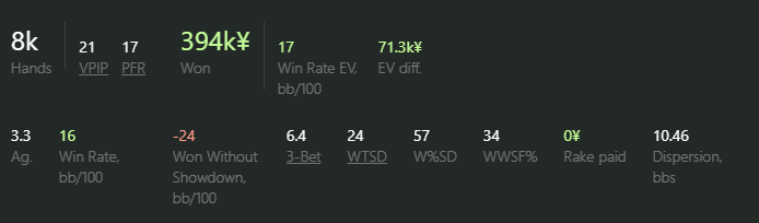 Закрываю неделю в слабый плюс. Первая неделя активной игры на сотке встретила меня мелким даунстриком и к концу недели все же вырулил. Тут хочется затронуть момент, когда у тебя трудная сессия. В такие минуты мало по малу к тебе подступает тильт, который в скором времени начнет сказываться на твоих решениях. В какой то момент я для себя решил, что я никому ничего не должен, буду стараться допускать как можно меньше ошибок и как можно меньше креативить в спотах, где я не сильно шарю. Думаю, что в нашем деле самое главное - это не лишиться кукухи. Обычно я говорю себе, что в игре я буду стараться оставаться максимально невозмутим. Тут как с медитацией, в момент триггера ты стараешься вернуть себя в стабильное состояние и продолжать делать свою работу. По моему опыту, проблемы с тильтом возникают от ЭГО и не правильного ожидания от игры. Безусловно покер - это спорт и здесь главный враг, это ты сам.