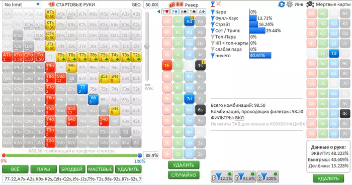 Самое ценное в нем то, что это простое решение, которые можно принять даже играя много столов. Все равно раскинуть такие странные диапазоны в реальной раздаче ты не успеешь