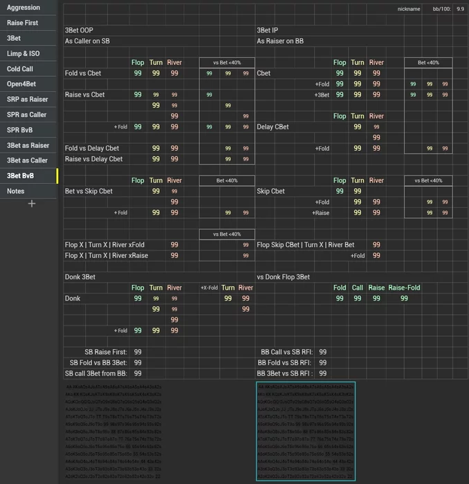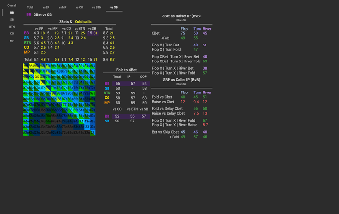 Исправлено: - Отображение ситуаций на флопе для линии 3бет, как рейзер в позиции - Отображение ситуации, когда опп колит донк в СРП - Отображение префлоп таблицы RFI для позиций EP. Добавлено: - Строка 3Бет-изолейт на оппонентов за игроком, когда кто-то делает лимп до игрока на префлопе с дополнительным поп-апом.