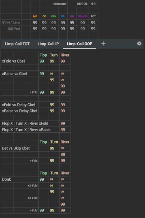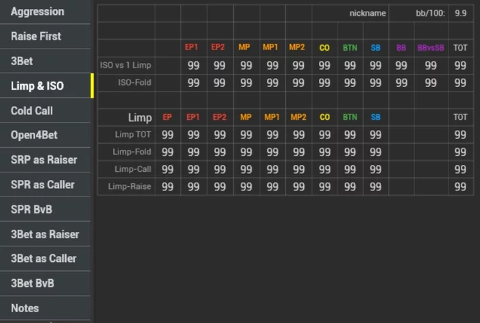 * Добавлена таблица лимпов, которая показывает, как оппонент реагирует на разные сайзы нашего изолейта (пока только для 6 макс).
