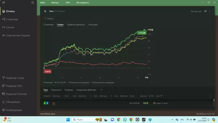 12 марта. Отличное настроение, мне исполнилось 25 лет. Уверенно открываю два стола и начинаю катать. Сессия длилась 4 часа, за это время я полностью начал читать поляну. Закончил сессию +9 бай инов)))