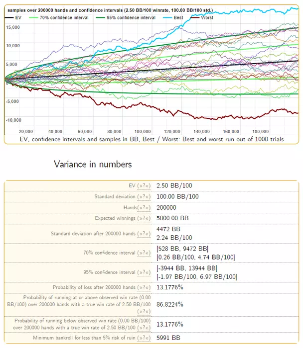 Вот можешь посмотреть https://www.primedope.com/poker-variance-calculator/
