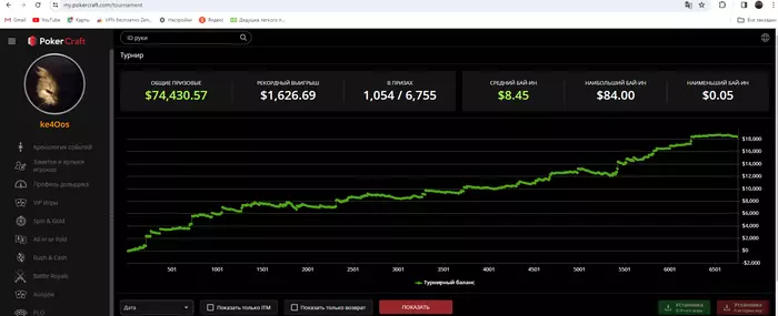 Здравствуйте. Меня зовут Александр. занимаюсь покером 6лет.по ев +20. РОИ будет на графике ниже. Играл в фондах, последний фонд свскул. Рос по лимитам каждый месяц. Потом произошло "тотальное затмение в моей голове" я залудил деньги фонда. из-за чего получил арбитраж. теперь никуда не берут" я как бомж , остался без работы" пошел работать курьером за 30к. чтобы как то выживать. Знаю, что с арбитражниками никто не хочет работать, тупо не дают второго шанса реабилитироваться ,куда податься и че делать не понятно.. Я знаю,что я хороший,плюсовый игрок и могу приносить взаимную выгоду ,как себе , так и работадателю. Я осознал всю печальность и плачевность моей ситуации, меня научила жизнь и считаю,что за свой косяк я поплатился серьезно. Я лишился мечты и любимой работы, хорошего заработка и свободы.