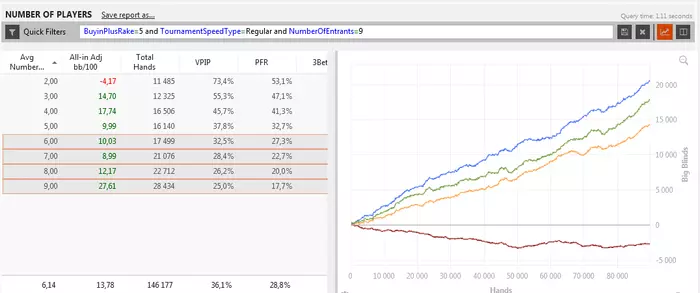 Регулярных SNG за 25$: 44 х 6-max + 41 x 9-max, поэтому из объективного там нечего показывать, хоть и профит я имею.