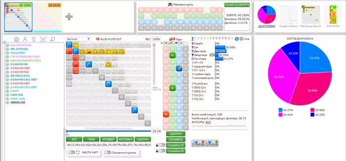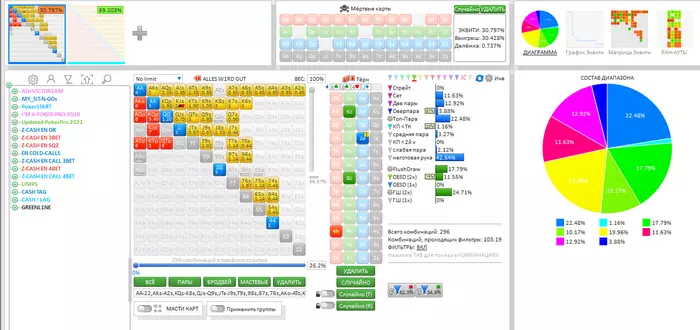 На 21-й карте преимущества - и диапазона, и по натсам, - перейдут к противнику и Хиро окажется в цугцванге, где любое действие равно значительному сливу - просто, на разные объёмы стека. Фактически, потеря даже 1/3 стека, скорей всего, похерит турнир, если далее не повезёт. То есть, Хиро будет уничтожен на куче риверов независимо от того как часто будет контбетить на ривере противник.