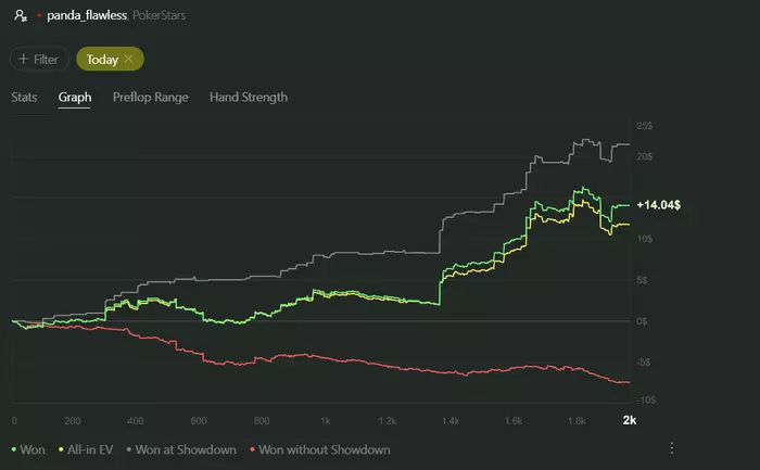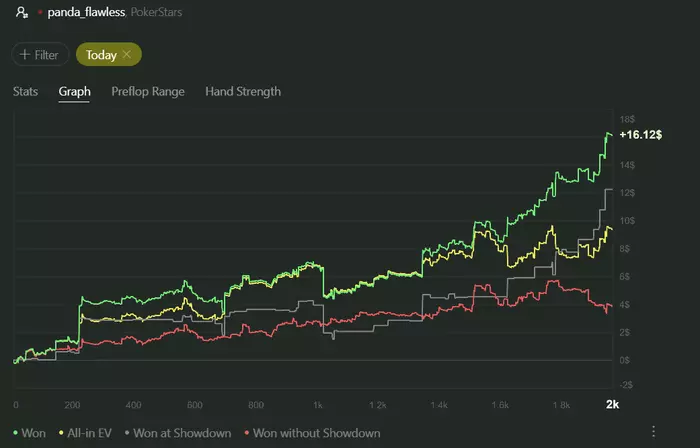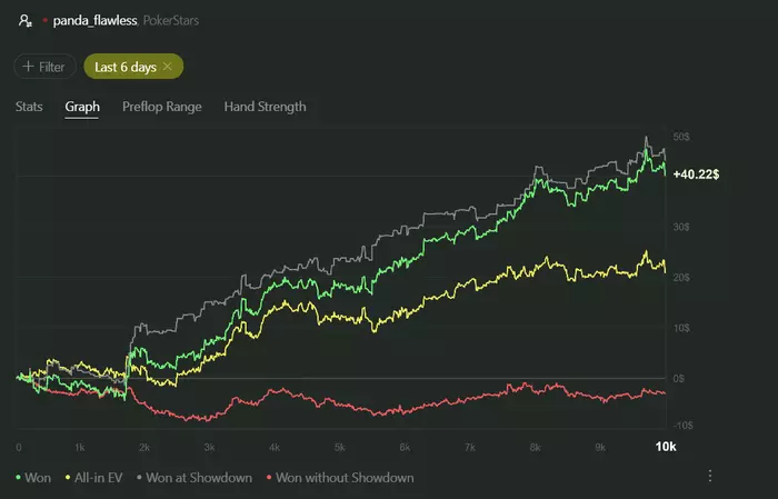 Первая цель почти сделана, осталось разобрать с тренером. Переапало меня конечно конкретно. Но зато чему-то новому я тоже научился. До этого в кэше я был чемпионом по сбору пасьянса и недоблефовывал даже в самых очевидно крутых ситуациях для этого, но сейчас я уже начал немного работать на по красной линии . В дальнейшем хочу сделать немного другой стиль игры чем тот который был последние 10к рук. Посмотрим как у меня это получится .