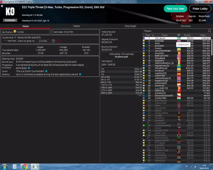 ХА-турнир за $22. Я - один из лидеров турнира.