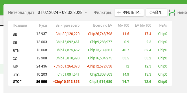 Тренирусь у Александра уже на протяжении 4х месяцев и всем доволен, за этот промежуток повысил свой аби с 10 до 22 и вывел винрейты на стабильный показатель 12-15 EVбб/100. Если вы хотите по-настоящему понимать для чего делаете то или иное действие за столом, то вам к Александру. К каждой тренировке виден профессиональный и ответственный подход, в которых видно желание тренера вас обучить настоящему эксплойт покеру в котором вы будете думать над каждым своим действием, научитесь подстраиваться под оппонента и уж точно найдете свою игру . Рекомендую :)