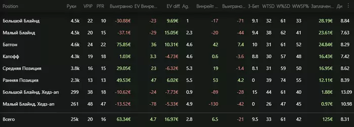Первая половина последней недели прошла тяжеловато, с пика улетел на 15БИ. Классическая фигня, доезды только оппонентам, велью не платят, блефы вскрывают. Несколько дней игры в 0, и на выходных удалось всё вывести в плюс наконец.