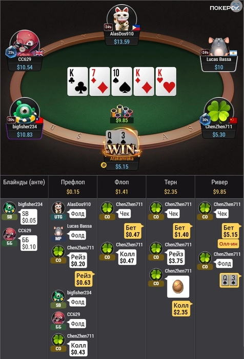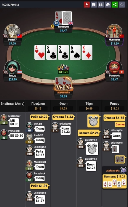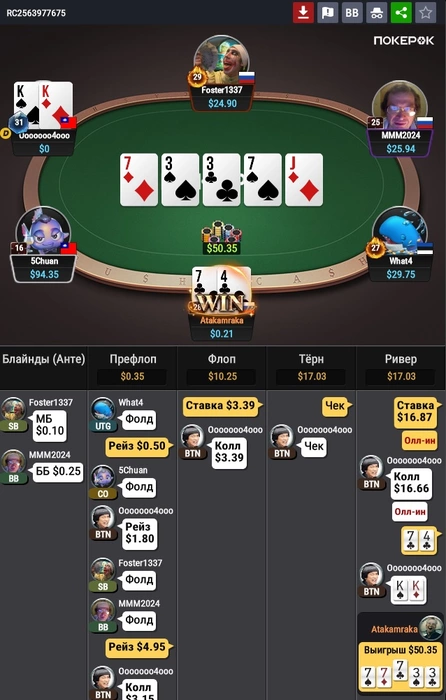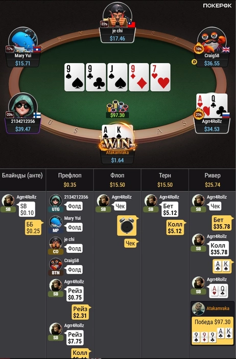 Еще в половине половин раздач челы колили по 2-3 аутам, проиграл
