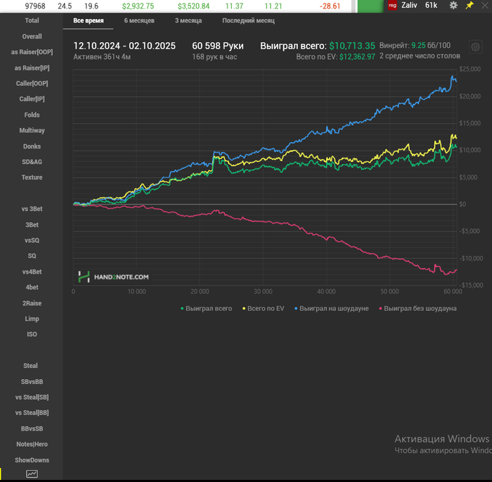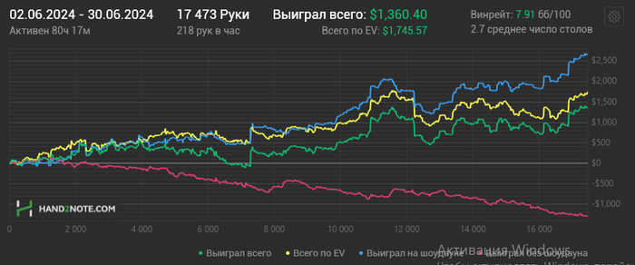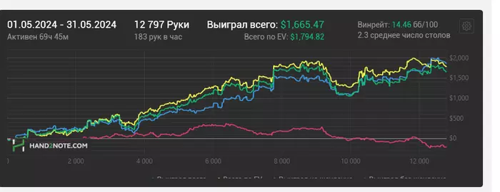 За время тренировок и пару месяцев игры, я из рега нл5 с винрейтом 2бб/100 превратилась в крепкого регуляра нл25, и не собираюсь останавливаться!) Прикрепляю свой график. Выражаю огромную благодарность Руслану)