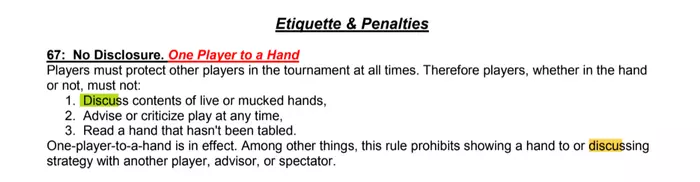 Объясню как дилер - переговоры запрещены в мультипоте. Если игроки 1 на 1 - хоть соски выкручивай оппоненту спрашивая доехал ли он на его алын. Про физические методы шутка, конечно, но в остальном, хоть все тайм банки спусти на словесное давление. Как только мультипот - любые разговоры запрещены. Тем более тимплэй.