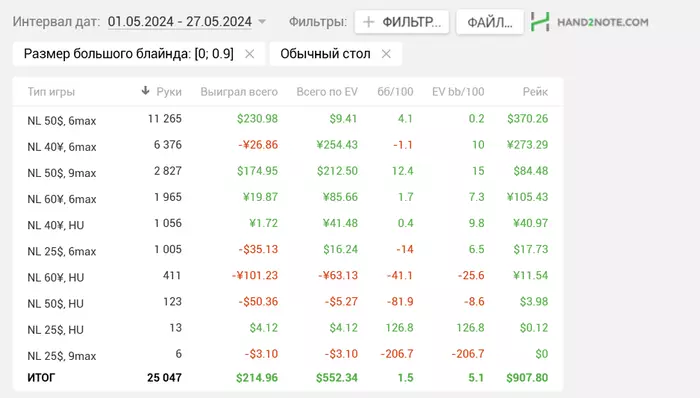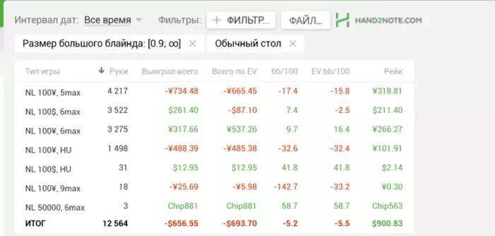 Satyrian, 12 на нл100 за этот год... Просто залетал по хорошему настроению туда. В апчике лучше играем и лучше решения принимаем. Вот я и заходил когда чувствовал себя уверенно. Деньги там давят)