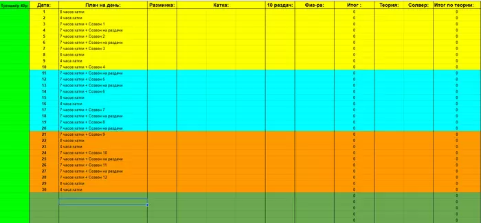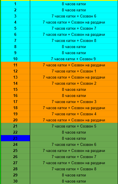 1. 6 часов покера в день + 1 час теории (каждый день) с 2мя выходными в неделю (4 через 1 будем работать +/-)
