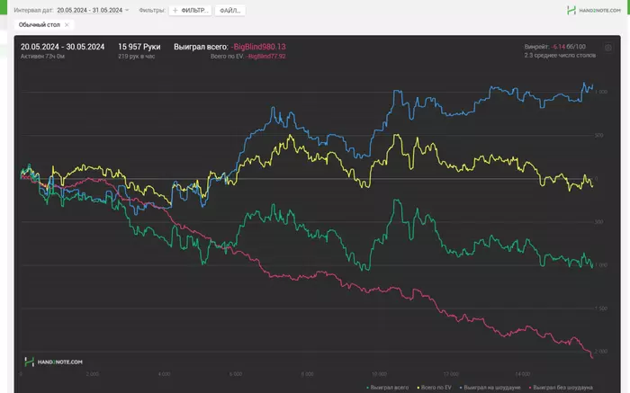 Наиграл не так много, просто тестил игру не в режиме жесткого гринда, а 3-4 стола максимум.