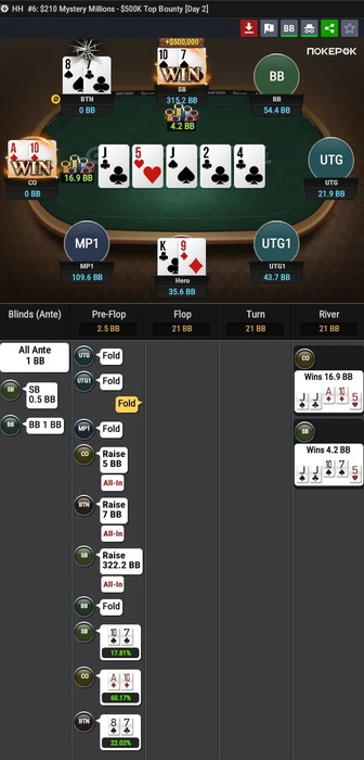 позабыв про то, что топ ноки в игре, что вцелом ренжи будут широкие, что есть и другие благоприятные расклады...я жму пас. короткие в оллине. сб чипак с 300бб оллин. выигрывает и забирает сундук 500к...