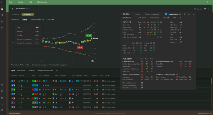 Привет всем микролимитчикам и не только! Отыграл еще один месяц. Пытался добавлять агрессию и отказ от колдколлов. Результаты так себе. Работаю дальше над игрой. Один раз впал в тильт, но не наделал глупостей и это хорошо.