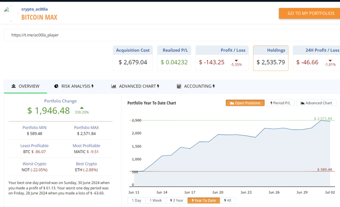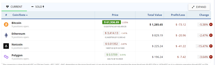 Вот пример моих накоплений лесенкой в паблик портфеле. Цель показать, что биткоин и ETH можно покупать на любых уровнях цен, если инвестиция на срок 4-5 года.
