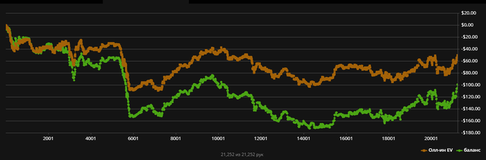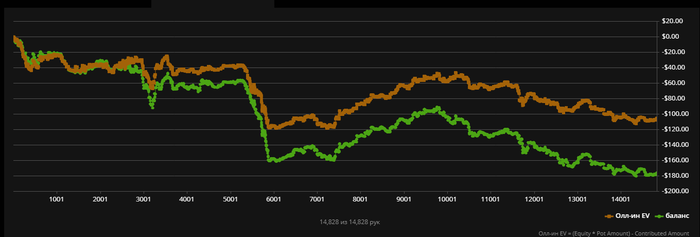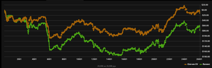 Что касается рейка. Акцент на том, что рейк - это профит. Вчера его вышло 112 бб/100. Это соответствующий профит.