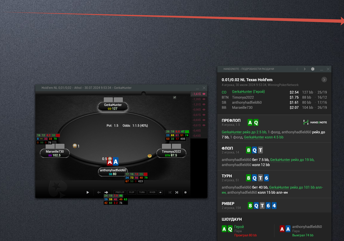 Флоп - 1) рег ставит пол банка, у меня топ пара, топ кикер, в целом я тут бью много рук хуже моей. 2) есть предположение что на