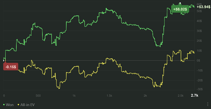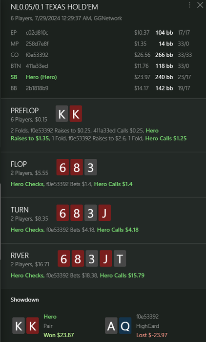 Отыграл пару сессий. +53.94$ 20bb/100 +0.7$ ЛБ