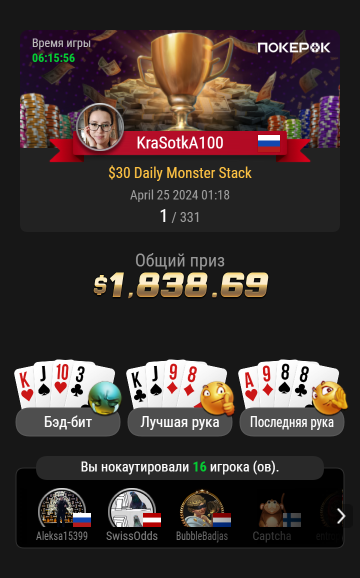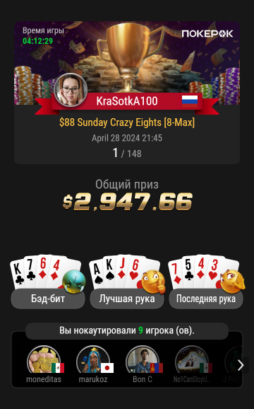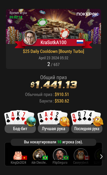 Всем привет! Ищу бэкинг МТТ. Играю в основном Омаху и холдем МТТ АБИ 25 на покерке. На предыдущей серии омахолик занял 12 место.