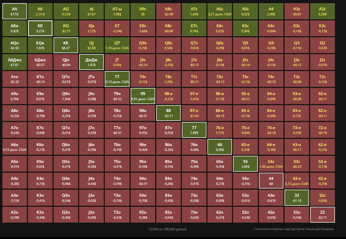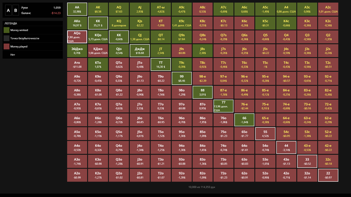 Судя по скринам я в плюс играю только топ 12-13 % и разве в остальных руках которые я стараюсь не разыгрывать есть та самая прибыльная часть ?