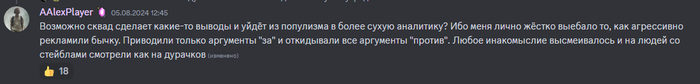 4. Разочарован ли я покупкой? Не знаю. Слишком маленькая дистанция. Вступил бы ли я снова? Ответ тот же. Что бы я посоветовал скваду? Меньше популизма. Помнить о том, что многие воспринимают их слова очень серьёзно и они всё же косвенно несут ответственность (не финансовую, так моральную) за своих учеников.