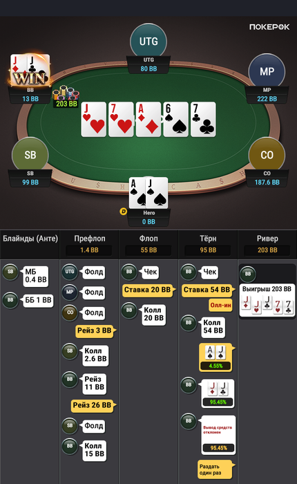 Сегодня провел небольшую сессию в +800 рук. Отыграл согласно плана - все четко, за исключением пару нюансов. Определил для себя еще один свой минус - слишком высокая частота конбета. В процессе игры будто яблоко в голову дало... осознал моментально в чем ошибка, стал практиковать на последующих раздачах и это дало свои плоды.