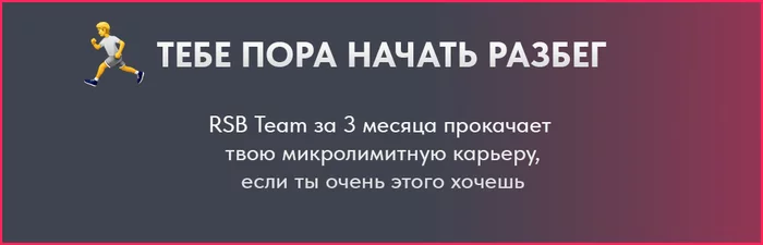 💸 РАЗБЕГ - проект для игрока совершенно безрисковый. Даже если ты закончишь три месяца курса в минус и проиграешь деньги, это не беда. Ничего отыгрывать не нужно, RSB Team простит тебе минус и разойдёмся краями.