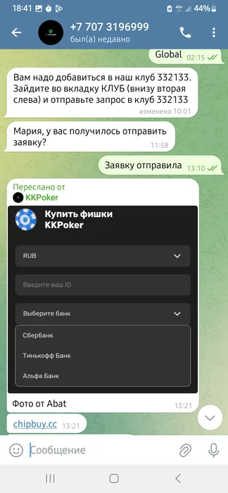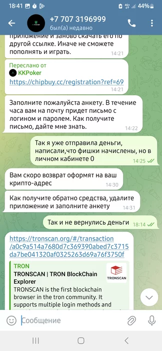 Здравствуйте. Хотела положить денег на kkpoker, но попался какой-то нетолковый сотрудник. Сначала дал ссылку, на которую я перевела деньги, оказалось потом, что не та ссылка. Подскажите те кто в курсе, что я сделала не так, и как туда перевести деньги.
