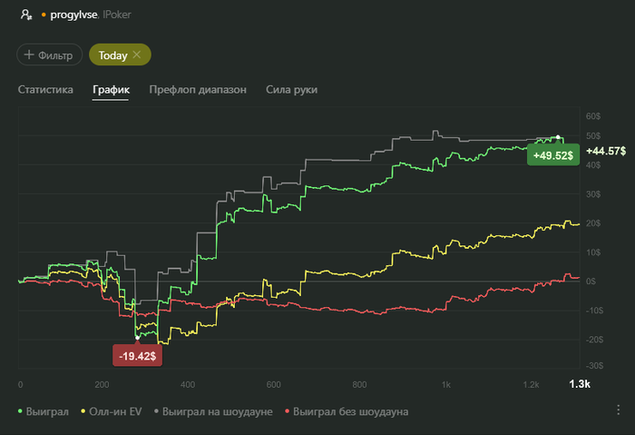 Первый вкаточный день прошел нормально хоть и в минус🤔 На удивление не тильтовал в тильт раздачах ) Главное чтоб накопительный эффект позже не сказался.