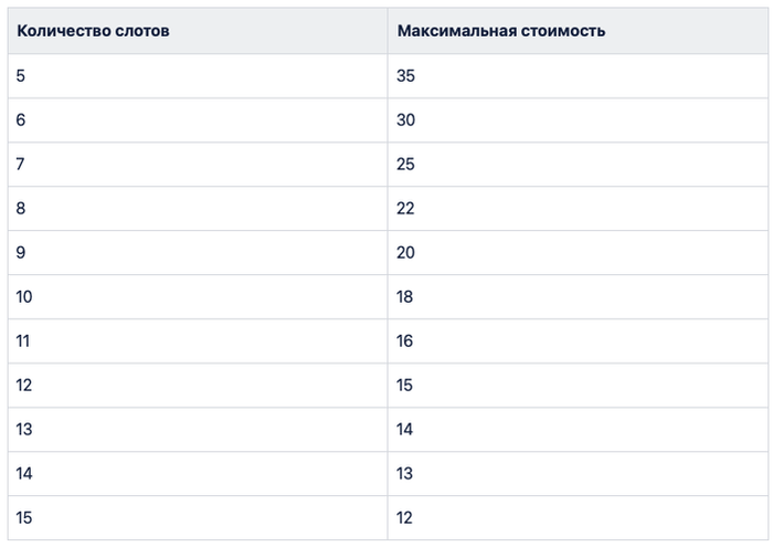 Табл.1. Количество слотов в зависимости от количества игроков в покерном турнире