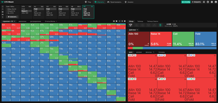 Похоже, что чарт сделан миксованным, чтобы защищаться против различных сайзов опена 2, 2.25, 2.5, 3 и не делать по несколько табличек, да и чтобы игроки не запутались. В наборе относительно несложные для розыгрыша руки. Интуитивно понятно, что делать с ними большую часть времени. Полярные 3беты заменены на более линейные.