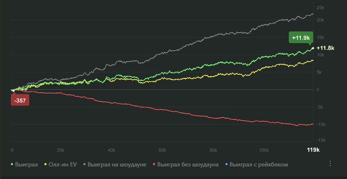 Если говорить по моим ощущением, то я переапан немного, но явно не в 1,5-2 раза, как «типо» показывает Х2Н. (Я сейчас именно про профит) думаю выиграл на 10, максимум 20% больше заслуженного.