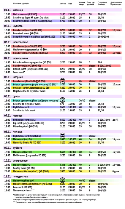 В первом посте, а так же на сайте https://pokertour.by/ опубликован анонс с подробностями 48 серии, которая пройдет с 1 по 11 ноября.