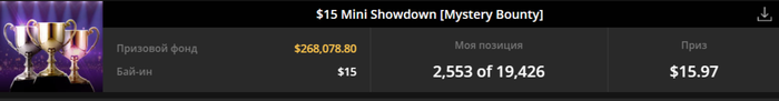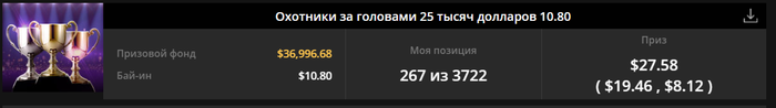 Ну и 5.40 хорошая игра была , где то в топ 50 ушатали типа с 4 4 на бб 23-25 потом играли свою игру , на финалке хорошо сыграли, последняя раздача запушали ради большого баунти но соперник нашел на бб JJ поэтому GG :) Пока что это наш BESTCASH но я уверен это не на долго :)