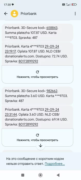 Позже я скидываю 2 скрина из приложения+смсок(вот эти скрины, для понимания)
