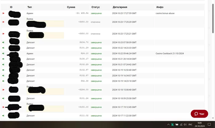 Сегодня утром зашел в аккаунт, где все средства списаны с пометкой КАЗИНО АБУЗ БОНУС. Никогда не занимался бонус хантом, готов к любым проверкам, прикрепляю скрин истории операции.
