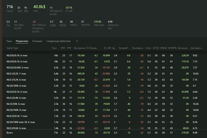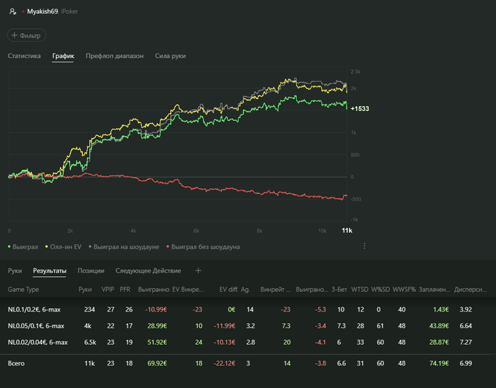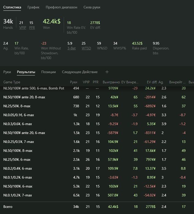 До этого играл лимиты до нл80 в приложениях и нл25 в еврорумах. Графики полугодовой давности прикрепляю, на всякий случай.