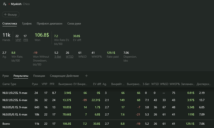 Всем привет! В поисках бекинга для кэш игры онлайн. Полгода почти не играл в покер, сейчас есть много времени и желания вернуться. До этого играл лимиты до нл80 в приложениях и нл25 в еврорумах. Графики полугодовой давности прикрепляю, на всякий случай.