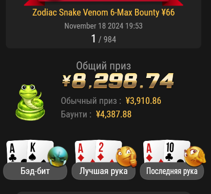 Из приятных новостей- наконец доделал винамакс и скрилл, успел пару турниров отыграть даже. Рум специфический, нужно привыкать, в первый день отвратно отыграл прям, во второй уже получше. Но в целом рук конечно мало, поэтому выводы делать мы конечно не будем, просто зафиксируем тот факт, что рум специфичный и затратный в данный момент по концентрации, слишком быстрая и активная игра, будем привыкать.