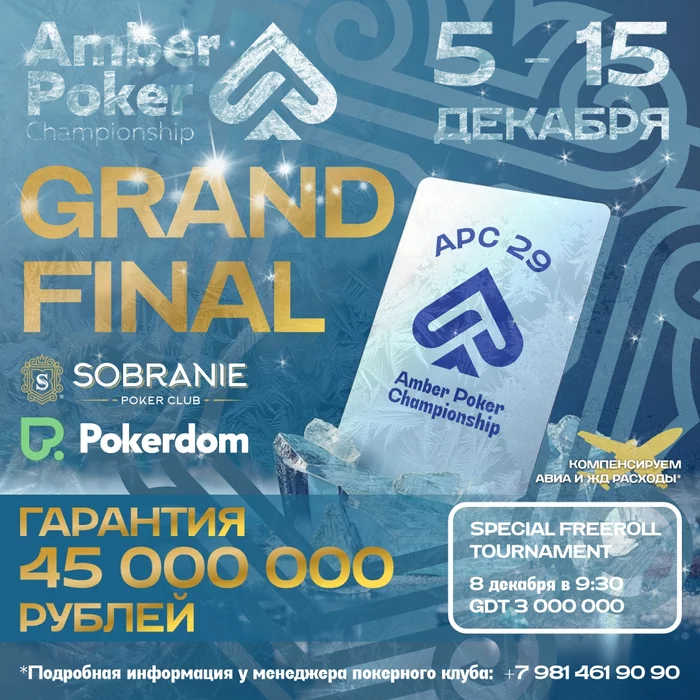 В эфире снова АРС Amber Poker Championship! Последняя серия уходящего года - Grand Final. Наши двери широко открыты для всех.