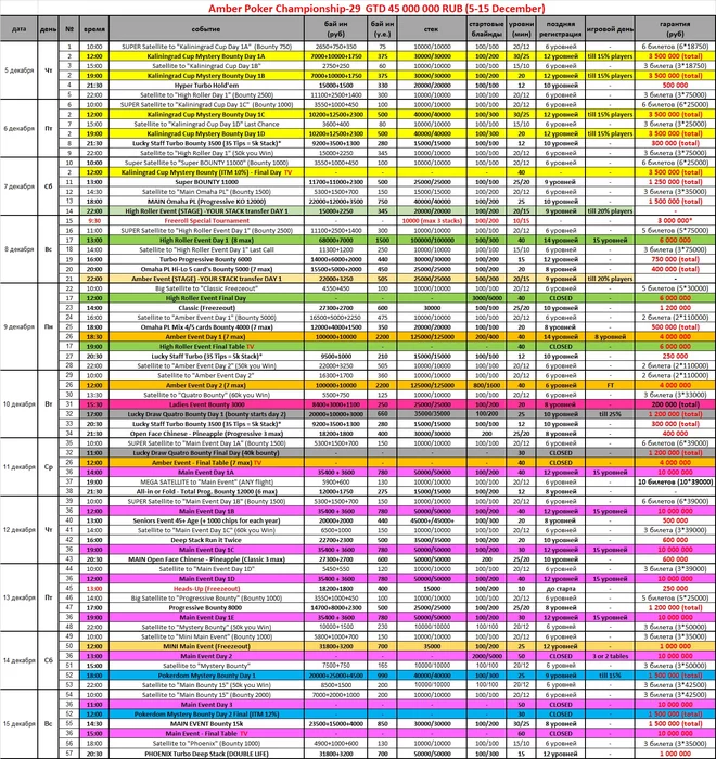 4. Main Event – главный турнир всей серии с гарантией 10.000.000 рублей.