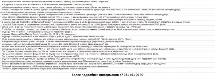 Подробная информация и регистрация по бонусной ссылке по телефону покерного клуба: