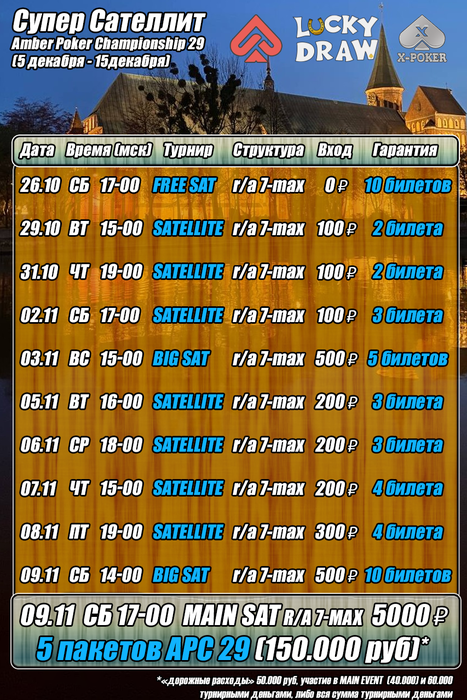 В мобильном приложении X-Poker (клуб Lucky Draw) в 1️⃣9️⃣:0️⃣0️⃣ мск (либо в 18:00 по Калининграду) пройдет сателлит к главному турниру