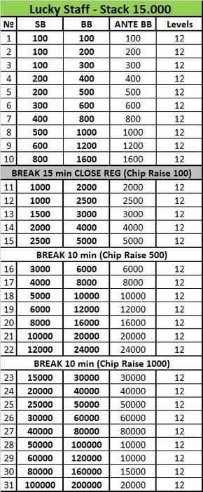 - Lucky Staff Turbo - турнир, в котором можно увеличить свой стартовый стек за чаевые для персонала. Недорогой, лёгкий и весёлый турнир.