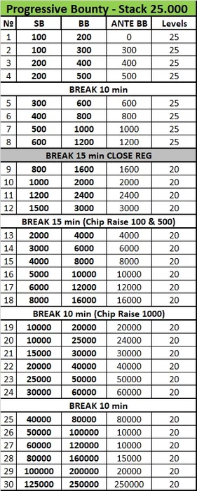 Суть турнира заключается в том, что первый день играется в обычном режиме без нокаутов, зато со второго дня, когда останется 25% участников, появятся "баунти" дороже одного бай-ина в данный турнир.