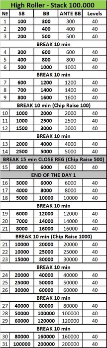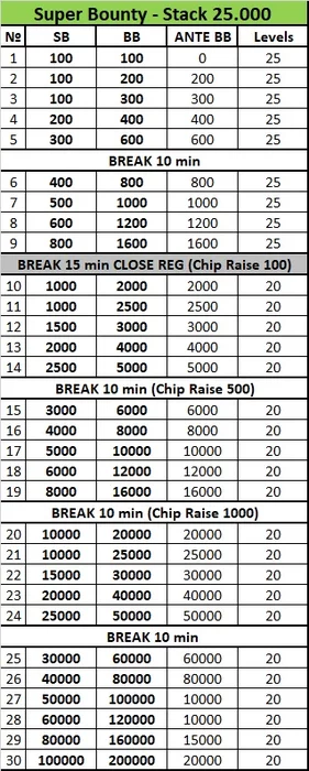 Стартовый стек 100 000 фишек и продолжительность уровней по 40 минут обеспечат нашим хай роллерам спокойную игру в глубокой структуре!